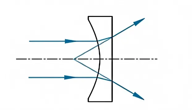 平凹レンズは、入射した平行光線をレンズの出力側で互いに発散するように曲げるため、負の焦点距離を持ちます。平凹レンズの球面収差は負であり、他のレンズによって生じる収差を補正するために使用できます。平凹レンズと同様に、曲率面は通常、最も長い物体距離または無限遠共役に向けられており、球面収差を最小限に抑えます。